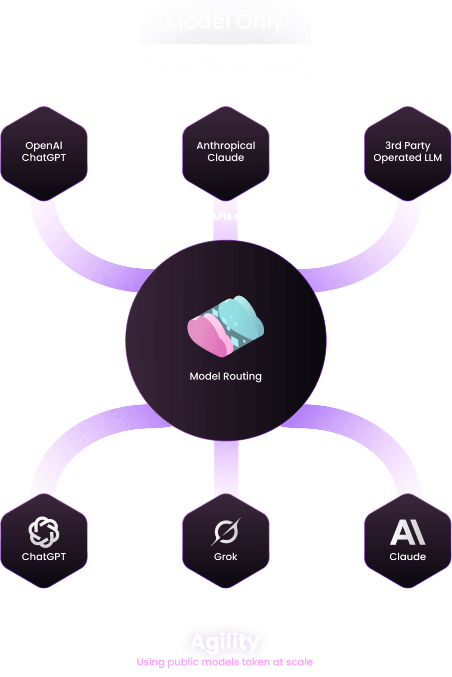 Routes across open-source, proprietary, and custom models seamlessly